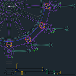 Ponechal som ho spolu s iným súkolím bežať po zdanlivej rovine. Vznikol rozdiel. Tento rozdiel som zosilnil silou. A potom ma napadlo niečo zaujímavé. Prevrátením procesu som dostal pohyb rotačný. Dobrý nápad. Nenašiel som podobné zariadenie, čo by takto pracovalo. Neviem, ho ani poriadne simulovať, aby som potvrdil vlastný nápad. Tu už nejde o nevývažok, resp. tiaž, s ktorou som sa pohrával pred tým. Tu som nevývažok nahradil priamo silou. Tým tiaž celého stroja nebude mať taký dopad na výsledný krútiaci moment, čo je skvelé. Zašiel som ešte ďalej.